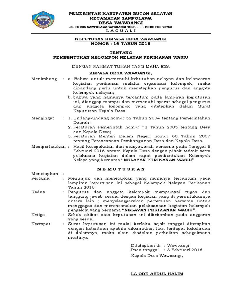 Contoh surat keputusan kepala desa. Demikian pembasahan kali ini tentang contoh surat keputusan kepala desa tentang blt dana desasemoga dapat menjadi rujukan. Contoh surat keputusan pemberhentian kerja karyawan. Menugaskan kpps sebagaimana dimaksud dalam diktum kesatu keputusan ini untuk mempersiapkan dan melaksanakan pemungutan dan peghitungan suara pemilihan kepala desa di tps serta mempertanggungjawabkan hasilnya kepada panitia pemilihan. Ini isi surat pengantar pencabutan sk surat keputusan kepala mtsn 1 sidoarjo.